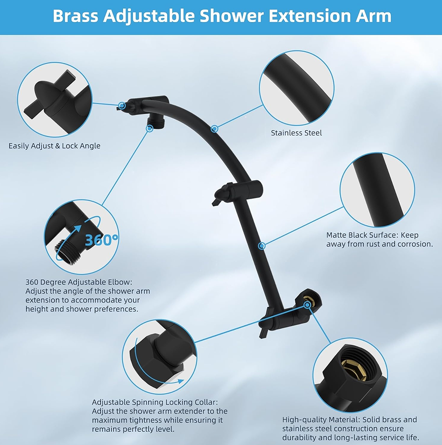 Metal Rain Shower Head System – Extended arm design for comprehensive shower coverage